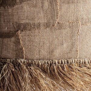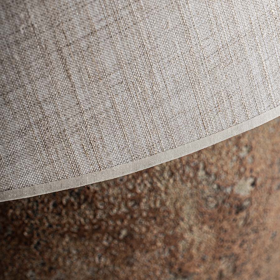 Lámpara de sobremesa de estilo vintage fabricado en cerámica en color tonos en marrón con acabado envejecido combinado con algodón en color crema con acabado jaspeado.