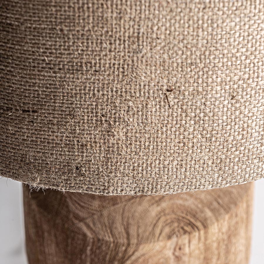 Lámpara de sobremesa Finja de estilo contemporáneo fabricado en madera de mango en color marrón combinado con yute en color marrón. Producto desmontable.
