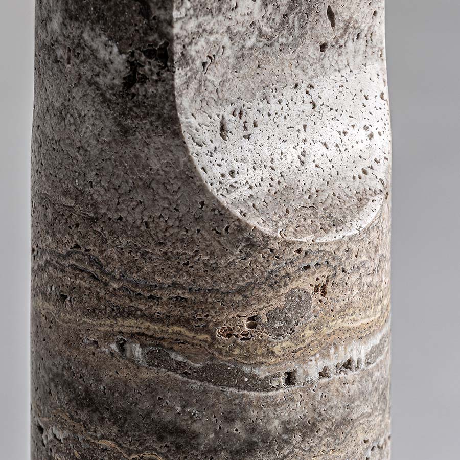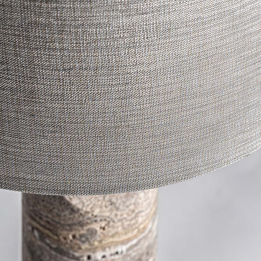 Lámpara de sobremesa Helios de estilo art deco fabricado en mármol en color gris combinado con hierro en color oro y poliéster en color gris. Producto desmontable.