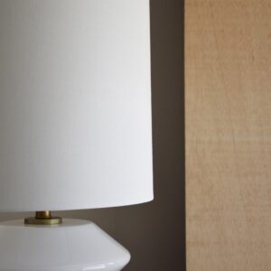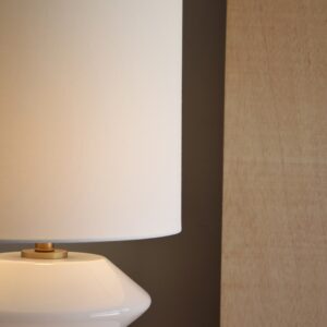 INLCUYE PANTALLA CILÍNDRICA REALIZADA EN LINO COLOR BLANCO.