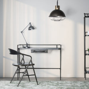 LÁMPARA DE TECHO REKEN, EN COLOR NEGRO/ORO VIEJO, DE ESTILO INDUSTRIAL. FABRICADO EN HIERRO.