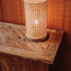 Pantalla fabricada en rejilla de rattán natural y madera.