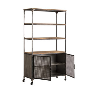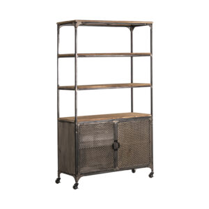 LIBRERÍA HEXHAM, EN COLOR NEGRO/NATURAL DESGASTADO, DE ESTILO INDUSTRIAL. FABRICADO EN HIERRO, COMBINADO CON DM. PRODUCTO DESMONTABLE.