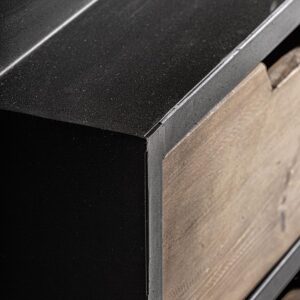 Librería Ivalo de estilo industrial fabricado en madera de pino reciclado en color negro combinado con hierro en color natural. Producto desmontable.