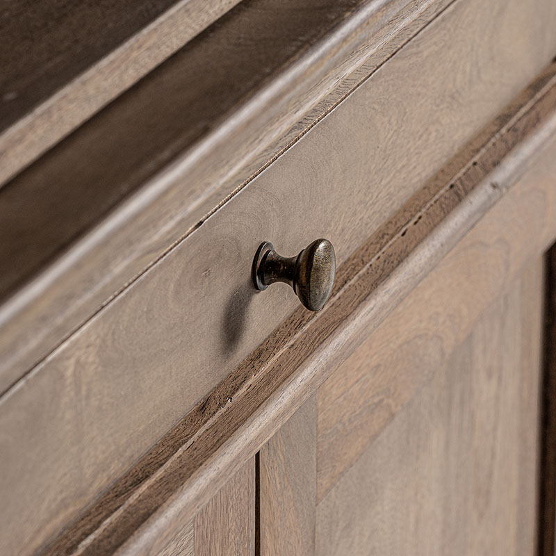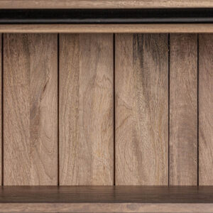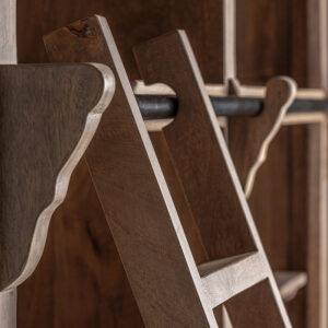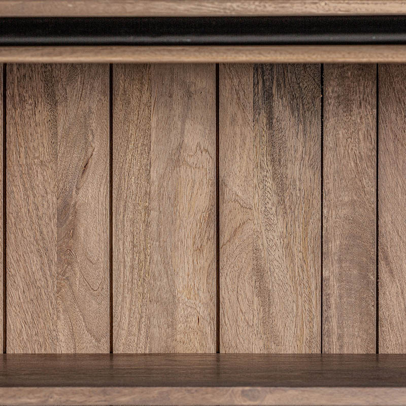 Librería mandern de estilo colonial fabricado en madera de mango en color marrón con acabado envejecido combinado con hierro y madera dm. Producto desmontable.
