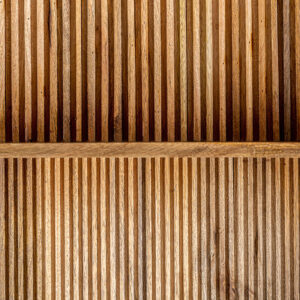 Librería plissé wood, en color marrón, de estilo art deco. Fabricado en madera de mango.