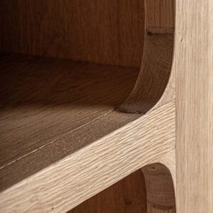 Librería saulge de estilo nórdico fabricado en madera roble en color marrón claro.