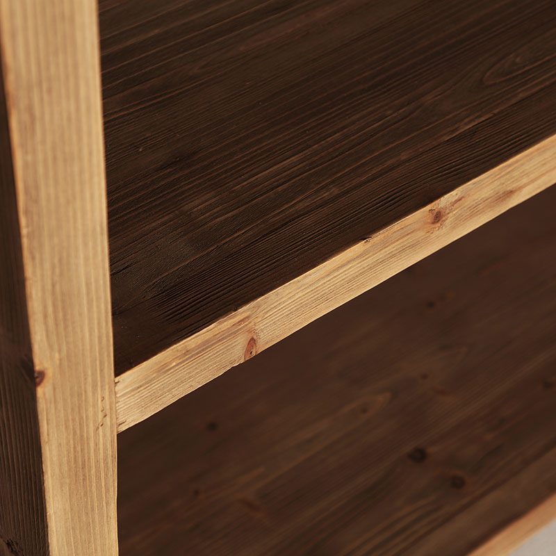 Librería udine de estilo colonial fabricado en madera de olmo reciclado en color marrón.