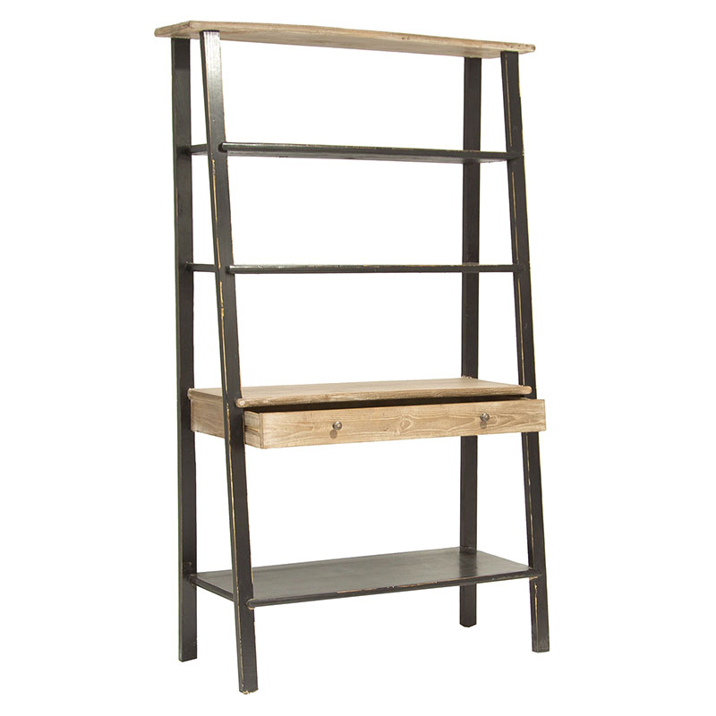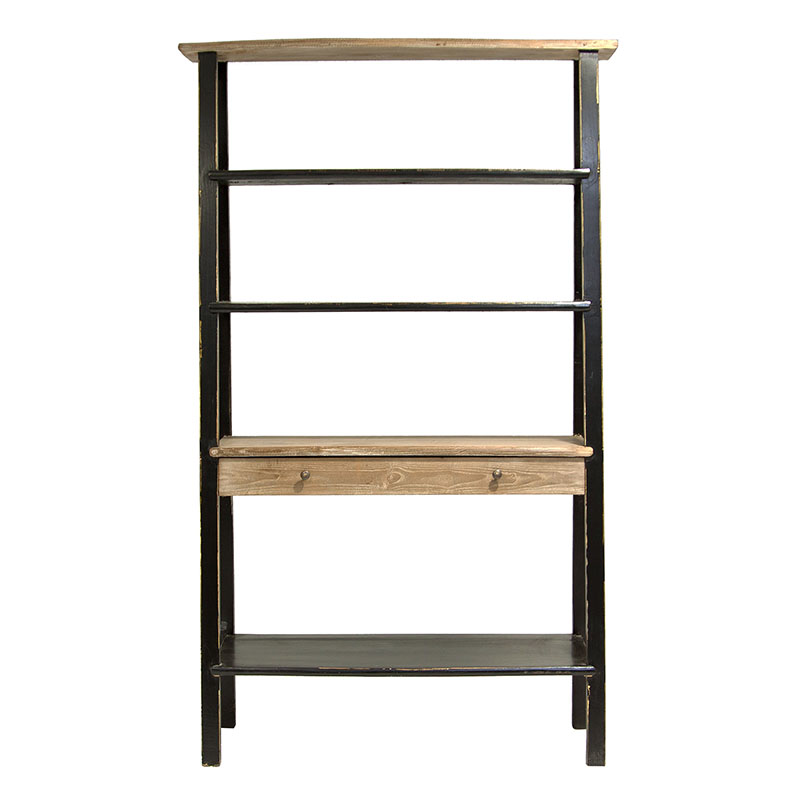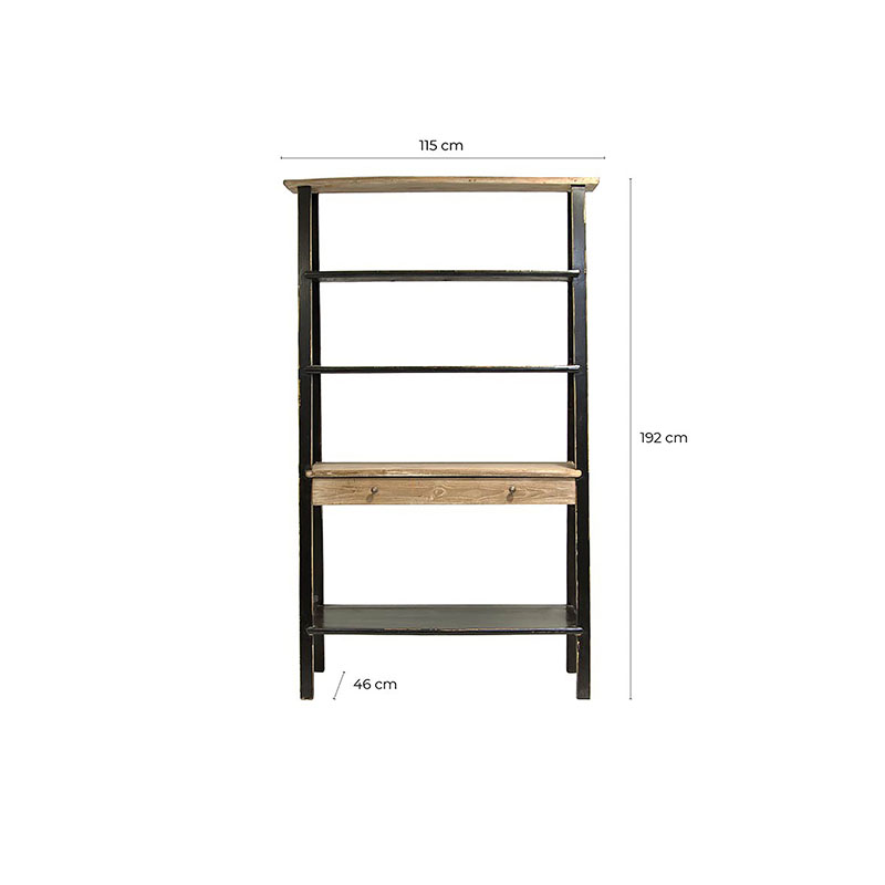 Librería zenica, en color negro/natural, de estilo industrial. Fabricado en madera de olmo.