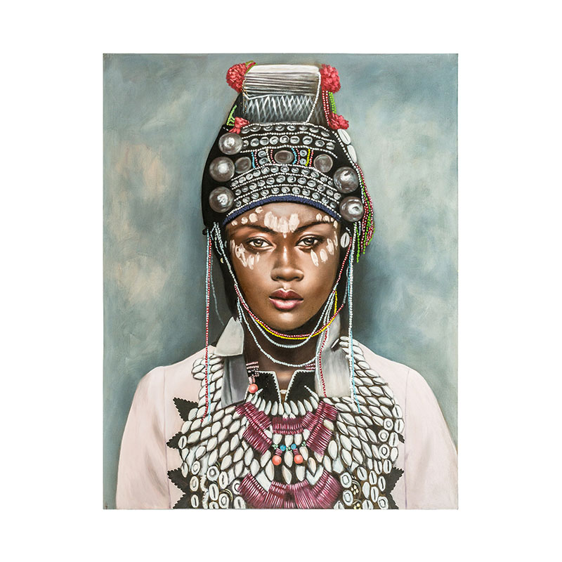 Lienzo akram, en color multicolor artesanal, de estilo étnico. Fabricado en lienzo, combinado con madera de pino.