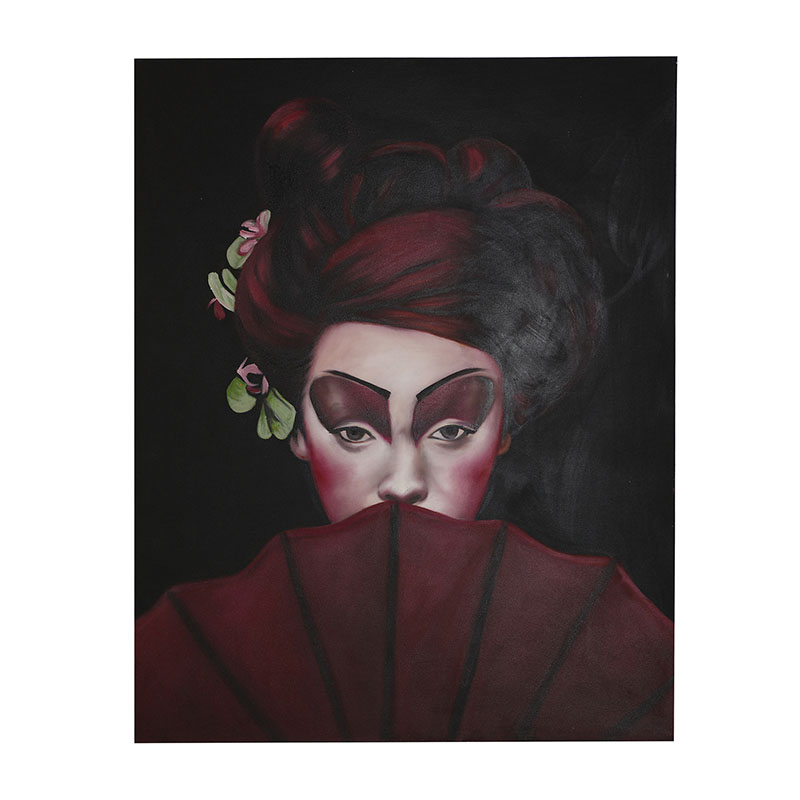 Lienzo rectangular asa, en color tonos oscuros artesanal, de estilo oriental. Fabricado en lienzo.