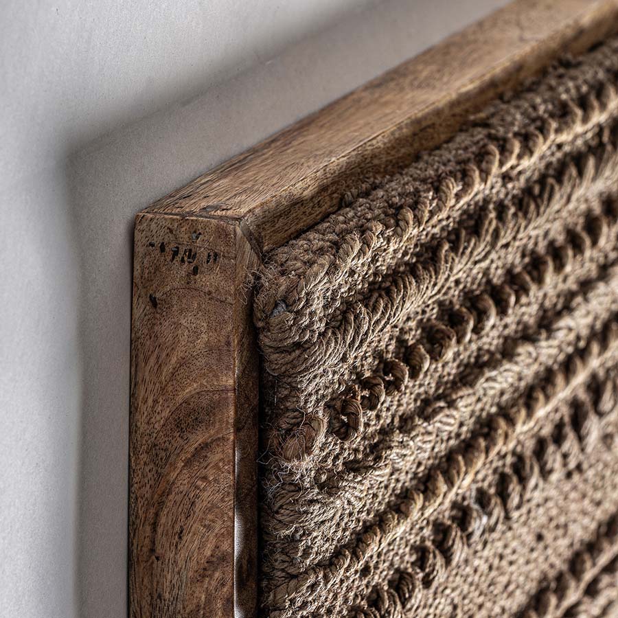 Lienzo Caliu de estilo boho fabricado en yute en color tonos en marrón combinado con algodón y madera de mango en color marrón.
