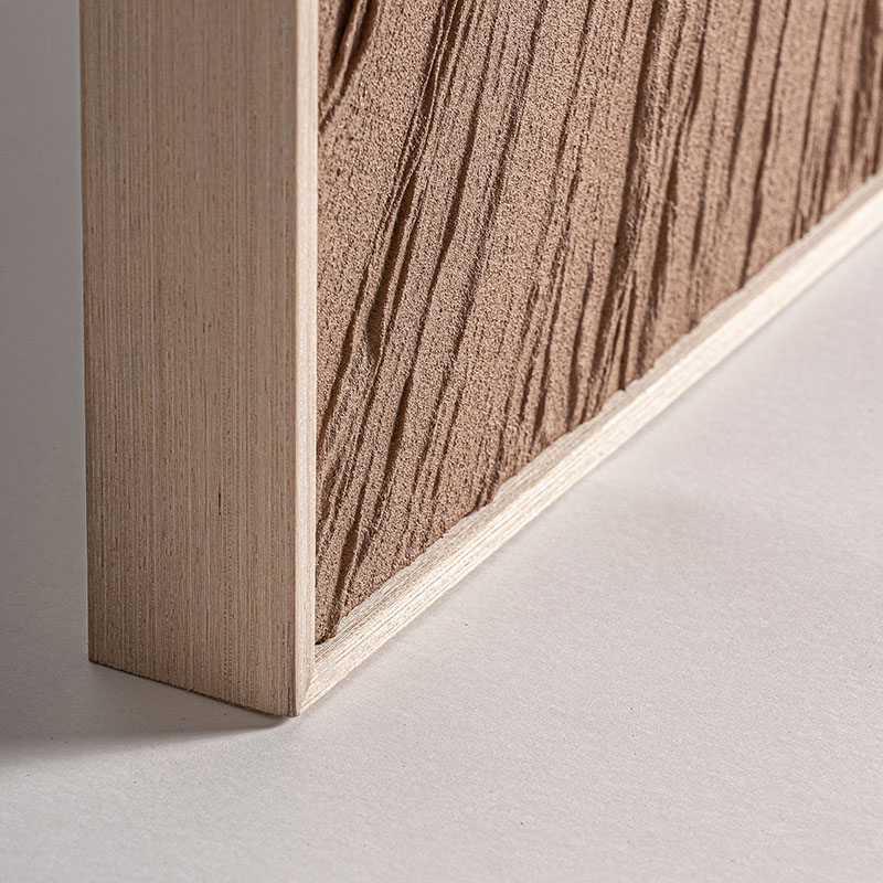 Lienzo chandan, en color tonos en marrón artesanal, de estilo contemporáneo. Fabricado en lienzo, combinado con madera de pino.