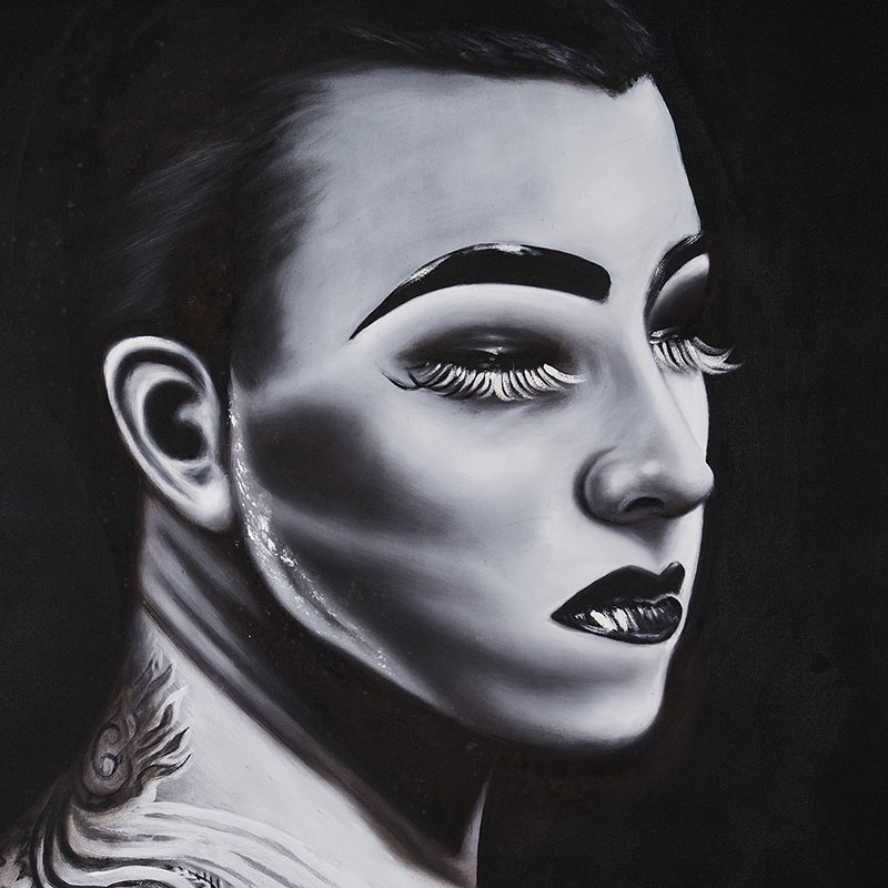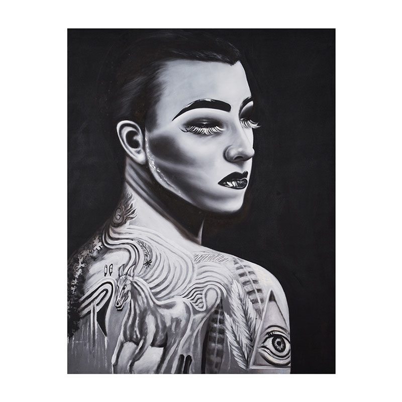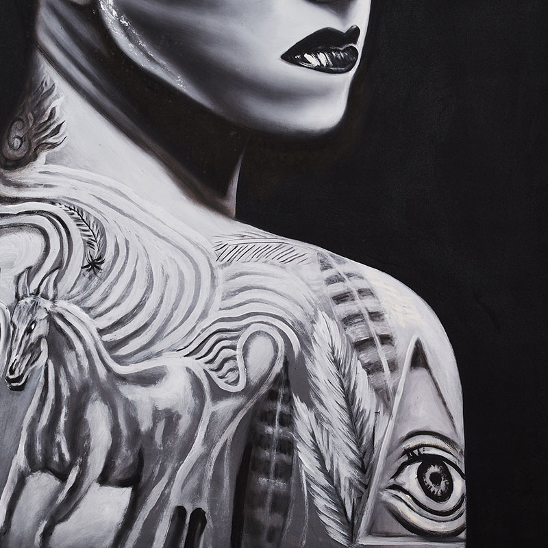 Lienzo Charlotte de estilo contemporáneo fabricado en lienzo en color blanco con acabado artesanal en color negro.