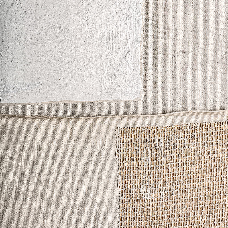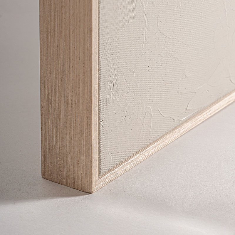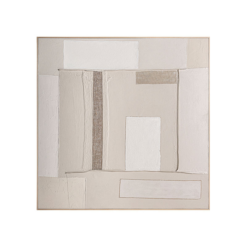 Lienzo cray, en color tonos claros artesanal, de estilo contemporáneo. Fabricado en lienzo, combinado con madera de pino.