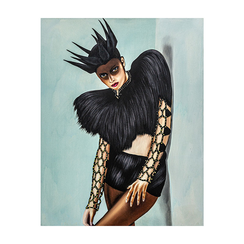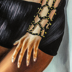 Lienzo Hatsu de estilo contemporáneo fabricado en lienzo en color blanco con acabado artesanal en color negro en color marfil.