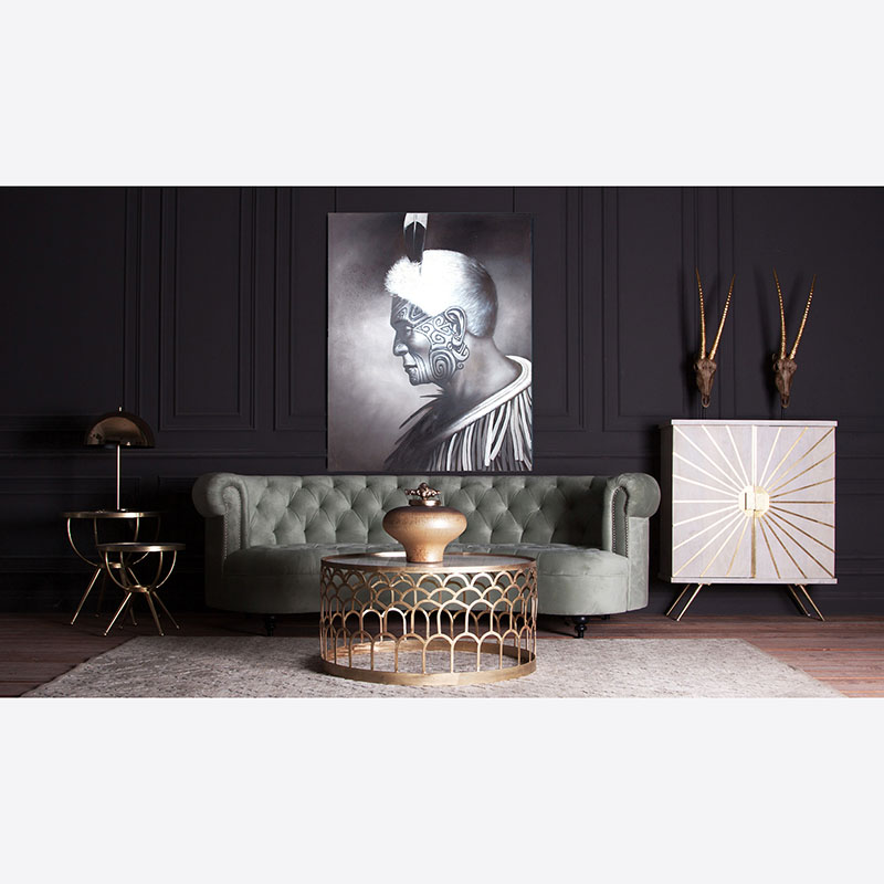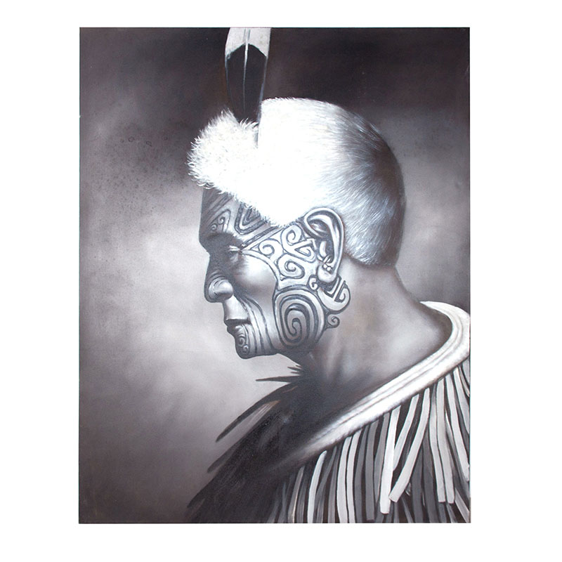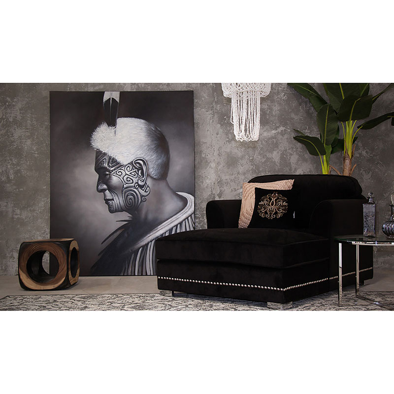Lienzo Rectangular Indio, en color Blanco/Negro Artesanal, de Estilo Étnico.Fabricado en Loneta, Combinado Con Madera de Pino.