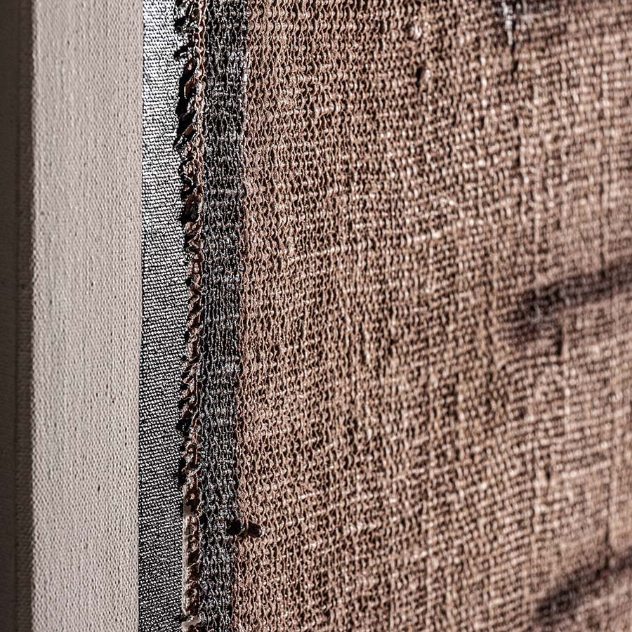 Lienzo Marcelo de estilo contemporáneo fabricado en lienzo en color beige combinado con madera tropical.