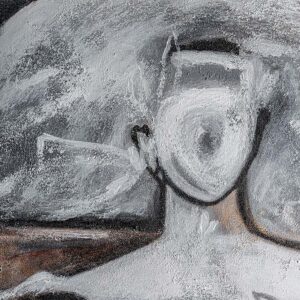 Lienzo menina de estilo contemporáneo fabricado en lienzo en color tonos oscuros con acabado artesanal.