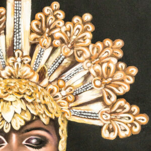 Lienzo Niurka de estilo oriental fabricado en lienzo en color negro con acabado artesanal combinado con madera de pino en color oro.
