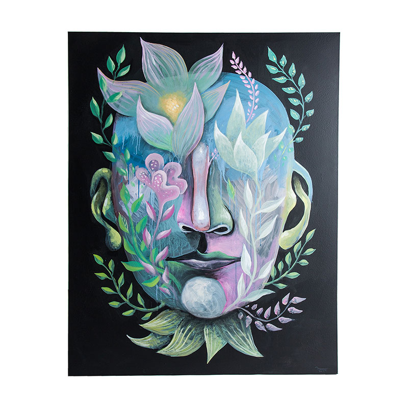 Lienzo Noah de estilo contemporáneo fabricado en lienzo en color multicolor con acabado artesanal combinado con madera de pino.