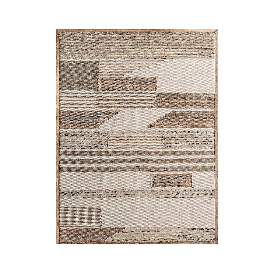 Lienzo Rubje de estilo contemporáneo fabricado en yute en color tonos claros combinado con algodón y madera de mango.