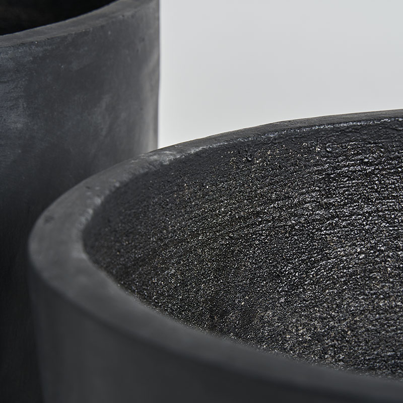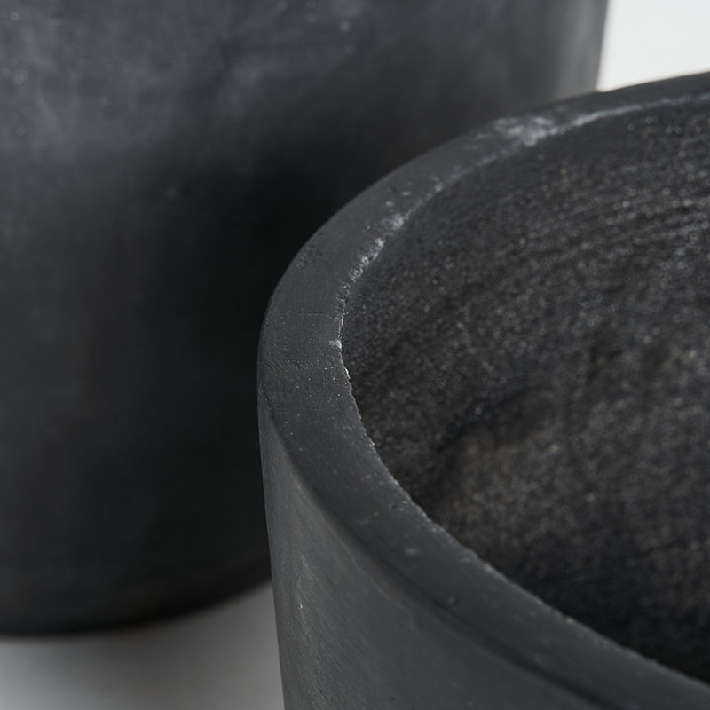 Macetero j 2 Blaghe de estilo contemporáneo fabricado en terracota en color negra.
