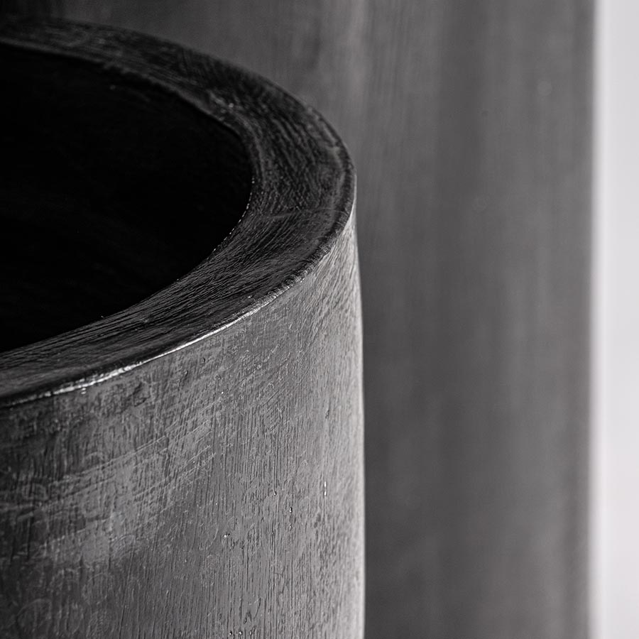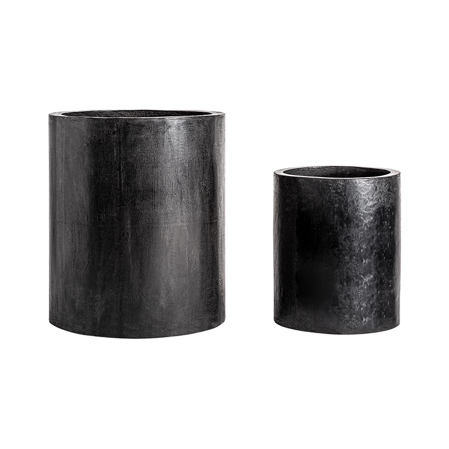 Macetero j 2 Dorian de estilo industrial fabricado en fibra de vidrio en color negro.