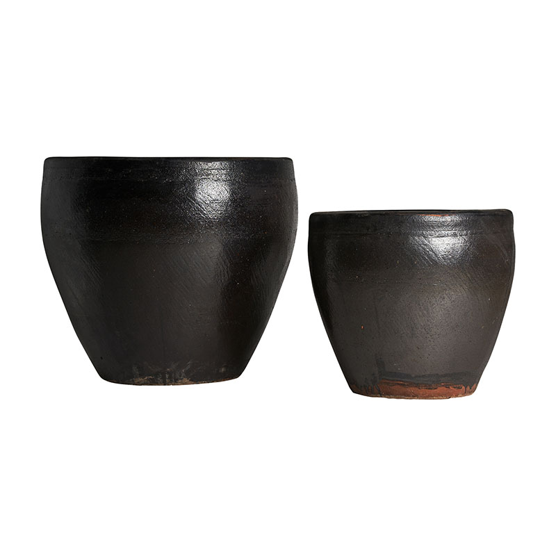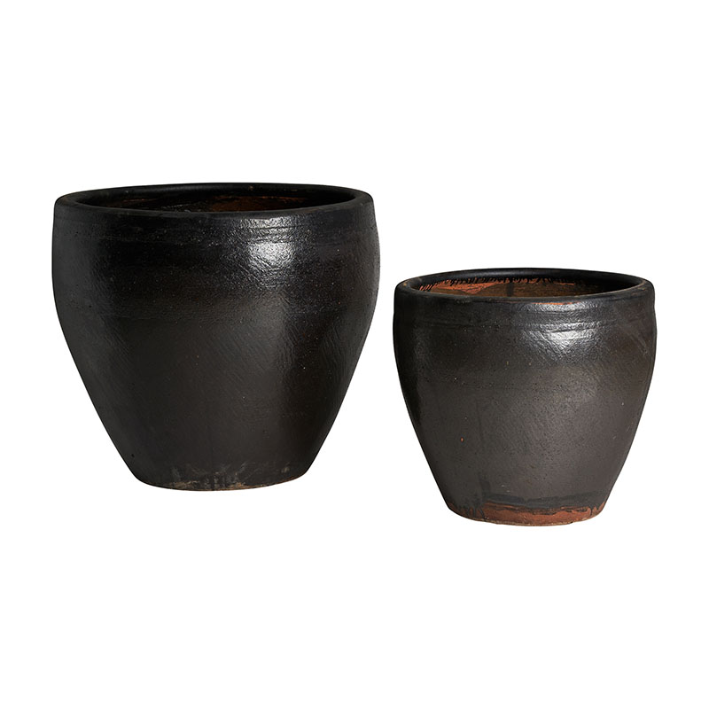 Macetero j 2 Gaye de estilo contemporáneo fabricado en cerámica en color negro.