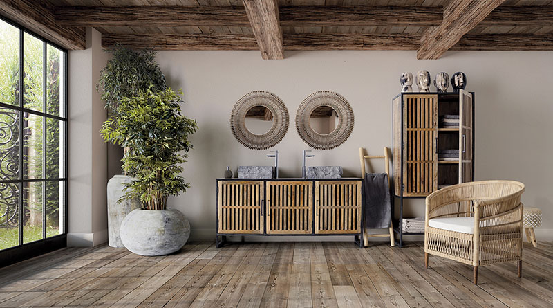 Macetero Gry de estilo étnico fabricado en terracota en color gris en color natural.