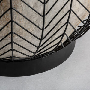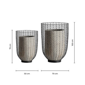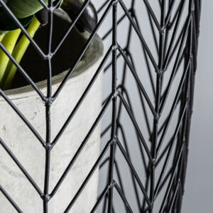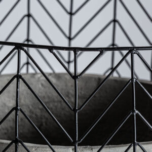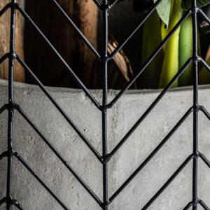 Macetero j 2 plissé metal de estilo art deco fabricado en cemento en color gris combinado con hierro en color negro.