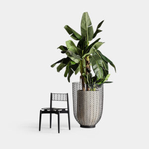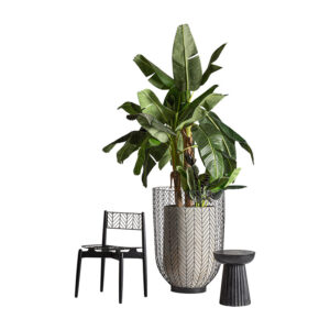 Macetero Plissé stone de estilo clásico fabricado en cemento en color tonos oscuros.