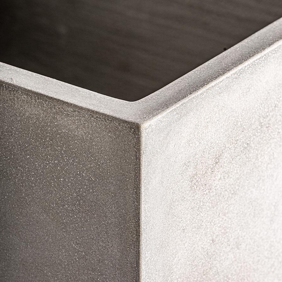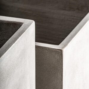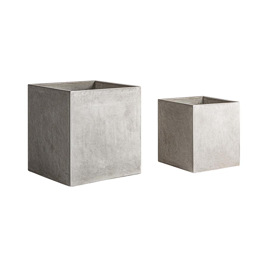 Macetero j 2 Loris de estilo industrial fabricado en terracota en color gris.
