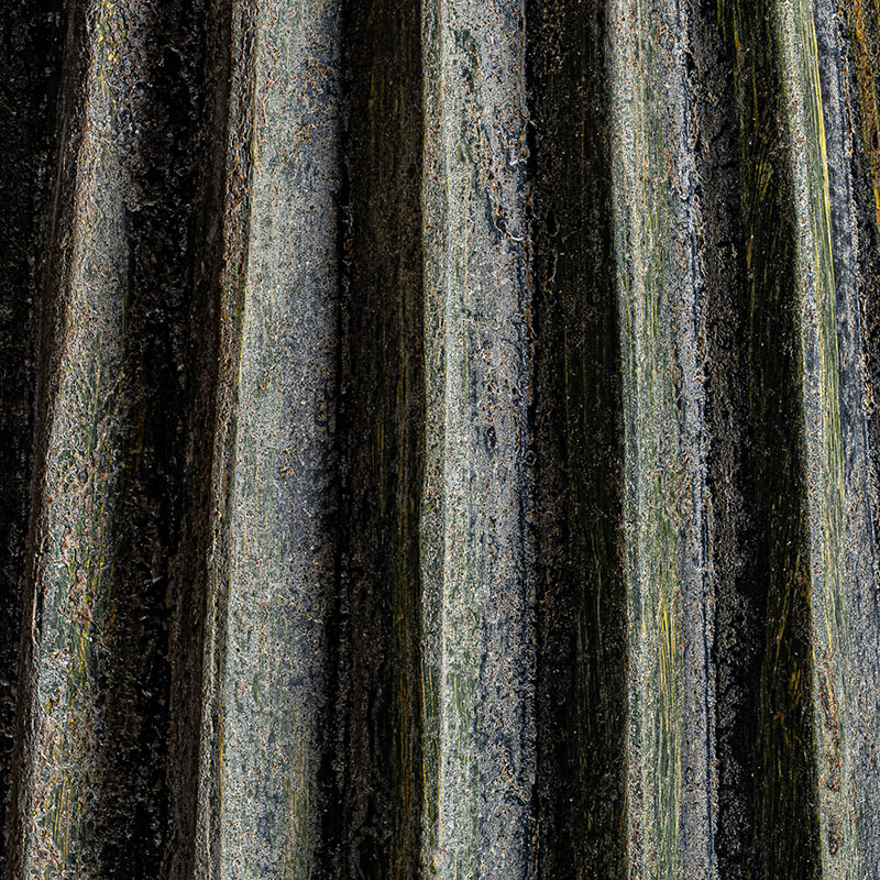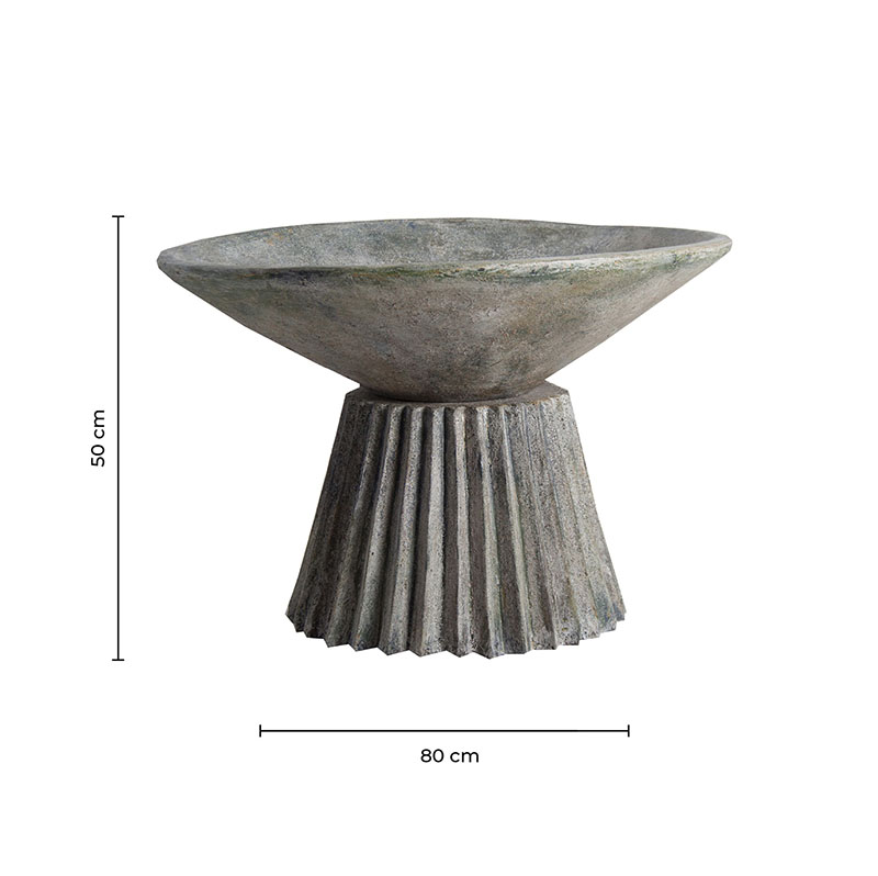 Macetero plissé stone de estilo art deco, fabricado en cemento en color gris con acabado envejecido, combinado con fibra de vidrio.