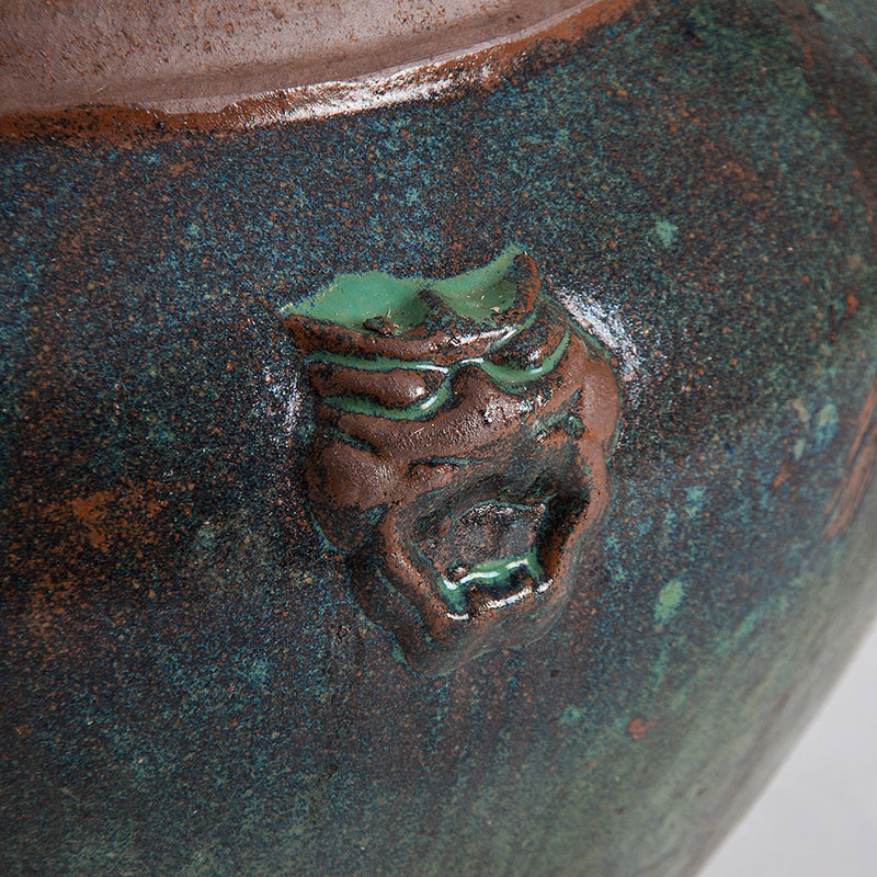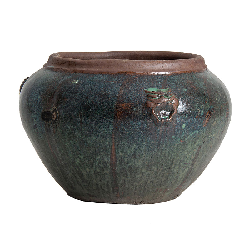 Macetero selegha, en color negro, de estilo oriental. Fabricado en cerámica.