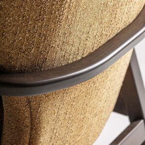 Mecedora kelly de estilo contemporáneo. Fabricado en madera de fresno en color marrón mate combinado con poliéster en color ocre jaspeado.