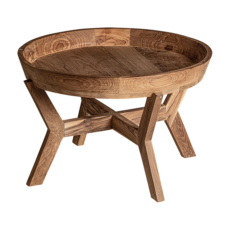 Mesa auxiliar aups de estilo colonial, fabricado en madera de teka en color marrón.