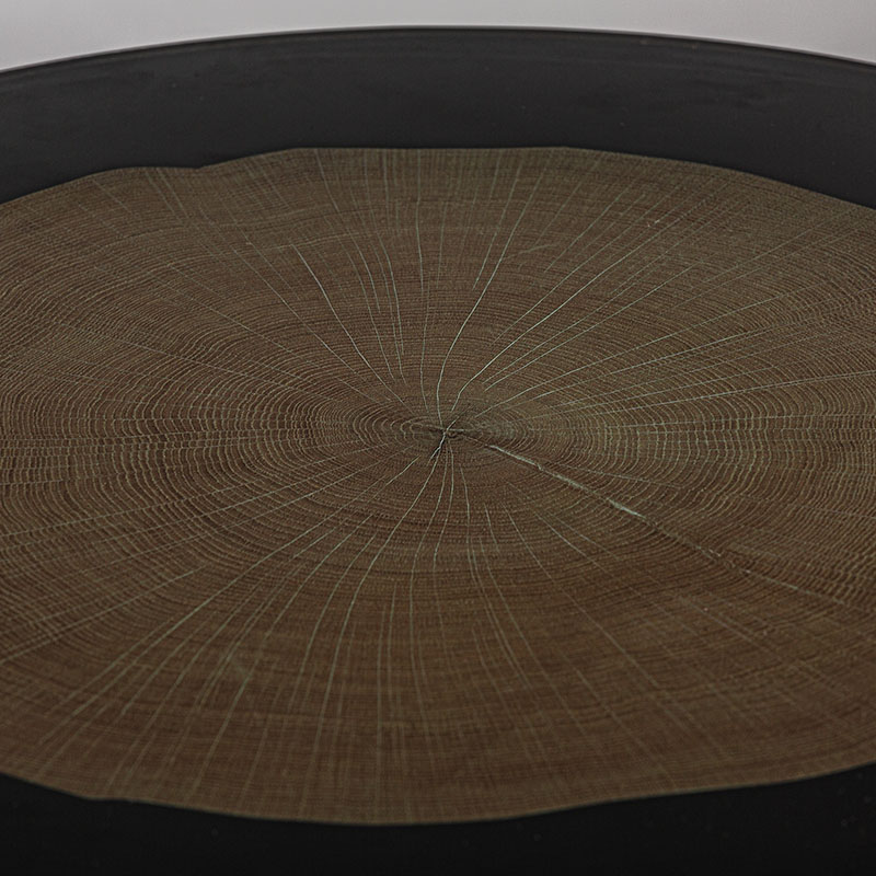 Mesa auxiliar bertrix, de estilo art deco. Fabricado en acero, en color negro, combinado con vidrio, en color oro.
