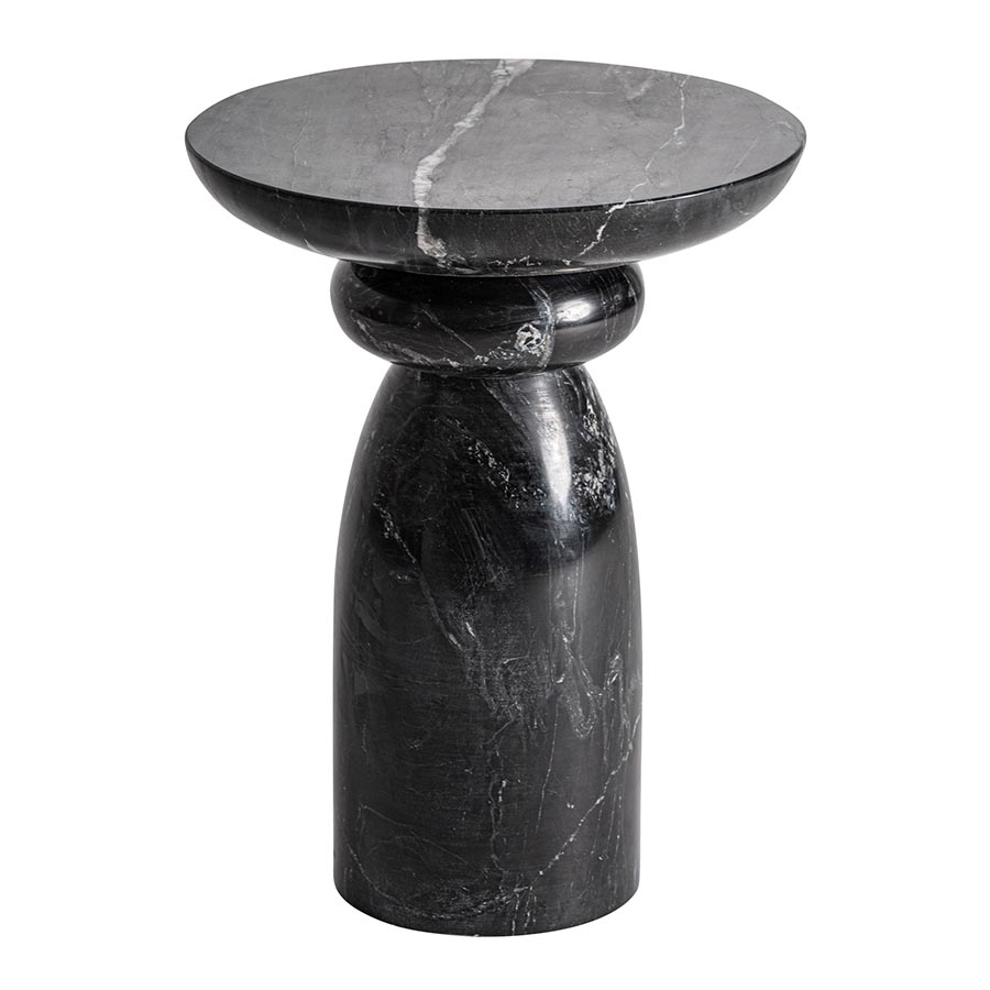Mesa auxiliar Bleasby de estilo contemporáneo fabricado en mármol en color negro.