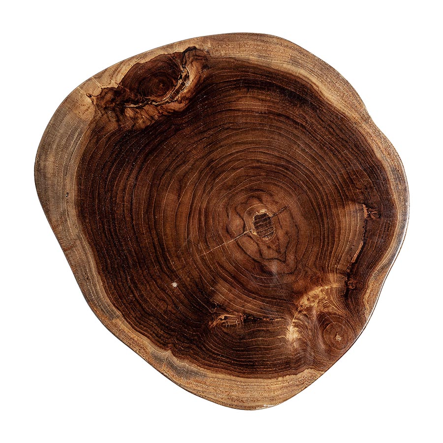 Reposapiés Dharm de estilo étnico fabricado en madera de tamarindo en color marrón.