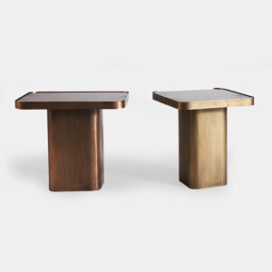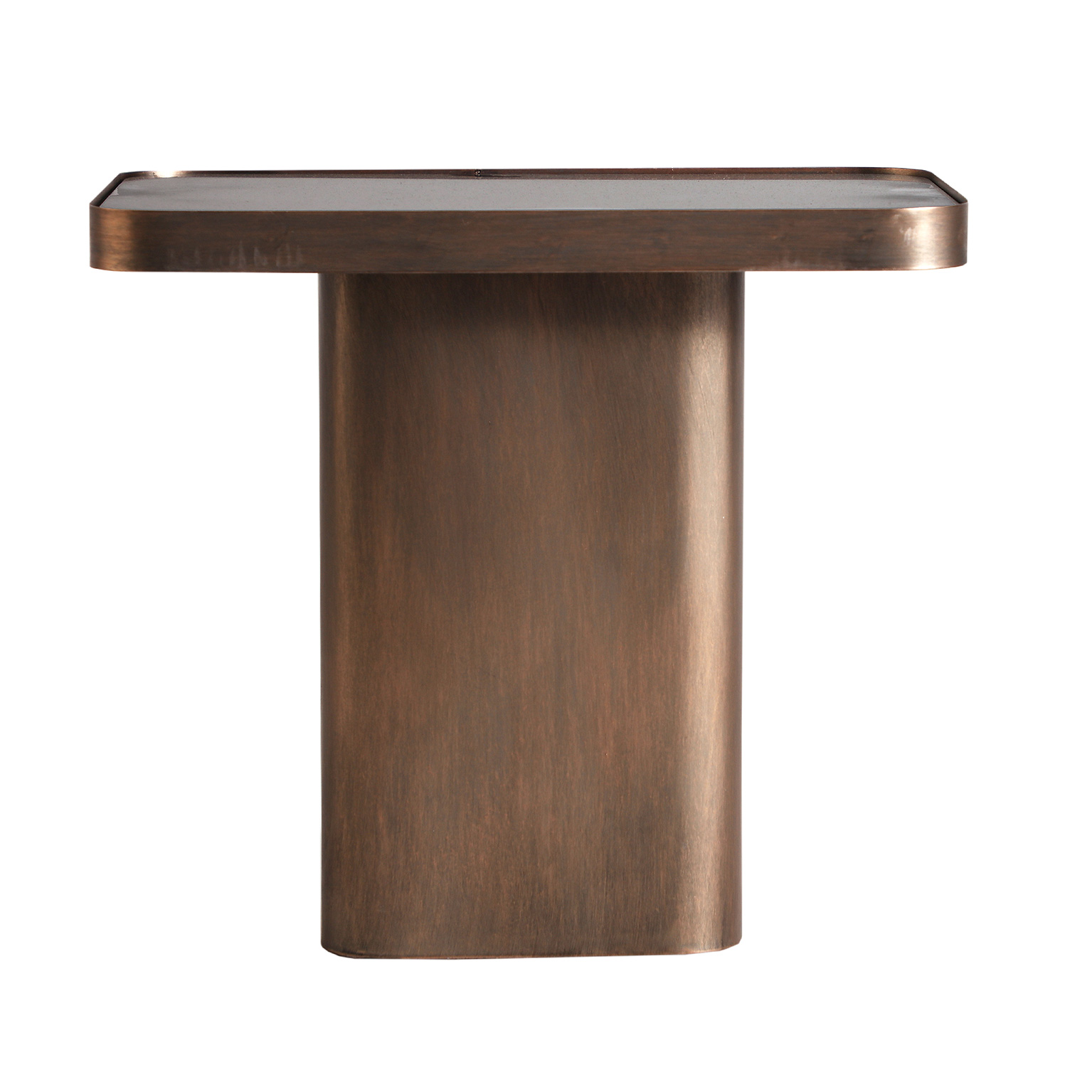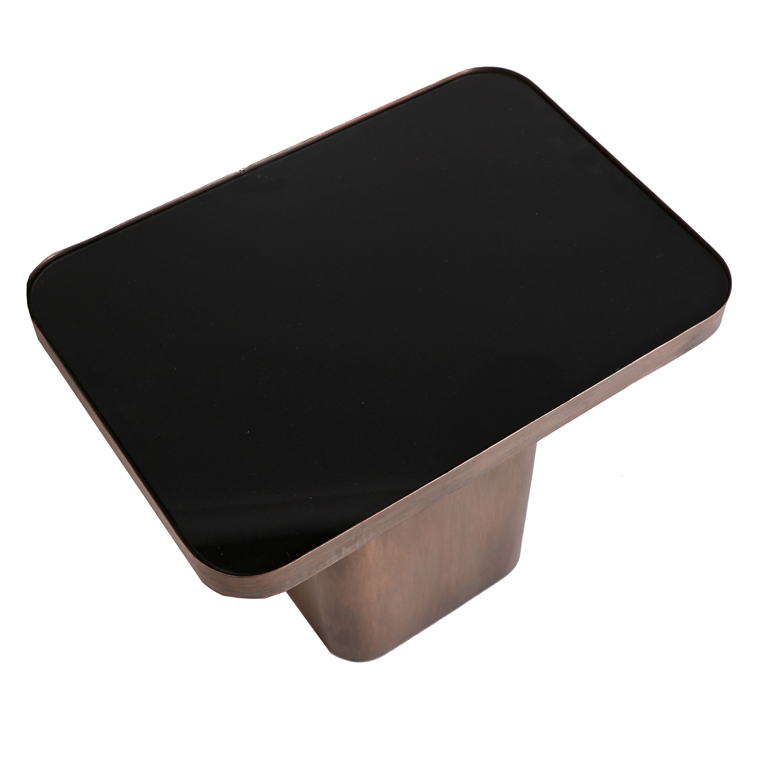 MESA AUXILIAR BREAM, EN COLOR COBRE ENVEJECIDO, DE ESTILO VINTAGE. FABRICADO EN HIERRO, COMBINADO CON VIDRIO. PRODUCTO DESMONTABLE.
