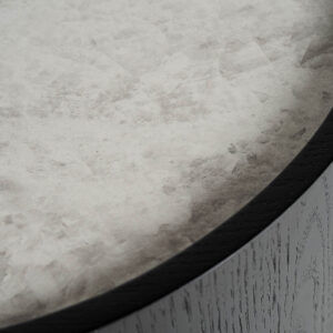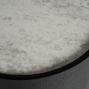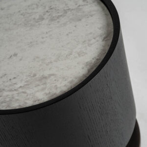 Mesa auxiliar breil de estilo art deco fabricado en madera roble en color negro combinado con cerámica en color blanco.