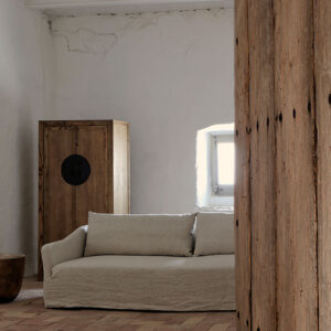 Mesa auxiliar Chitsa de estilo étnico fabricado en madera tropical en color marrón con acabado envejecido.