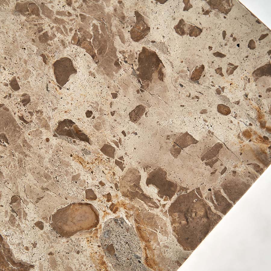 Mesa auxiliar grov de estilo art deco fabricado en mármol en color beige.