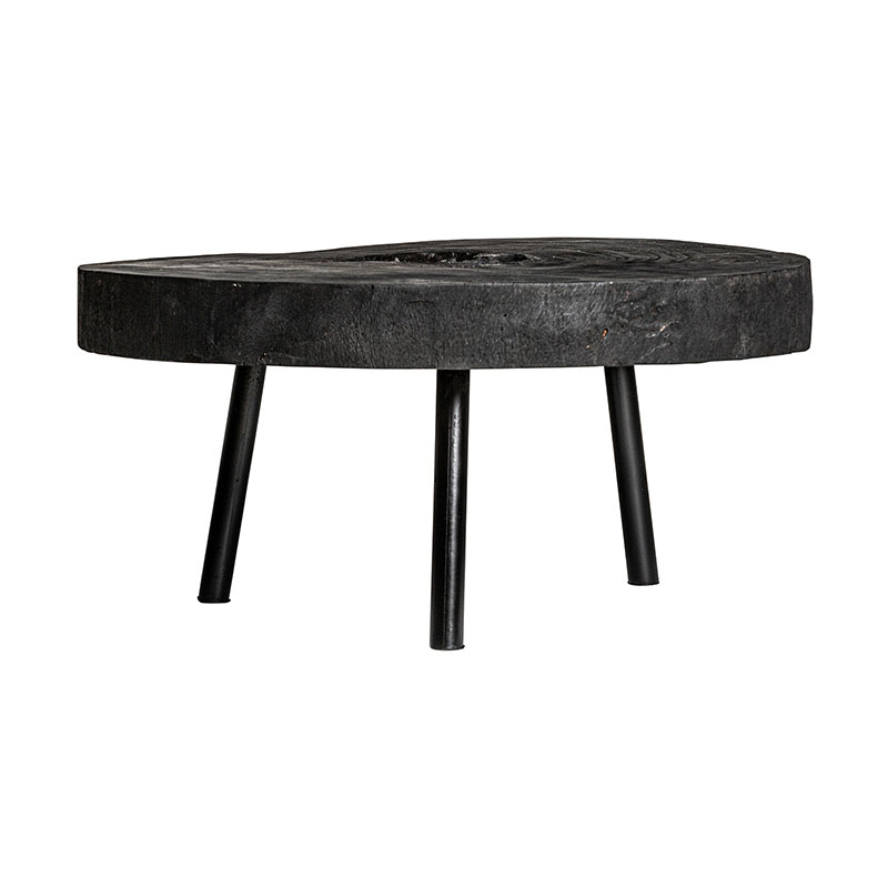 Mesa auxiliar kepoi, en color negro envejecido, de estilo étnico. Fabricado en madera suar carbonizada.