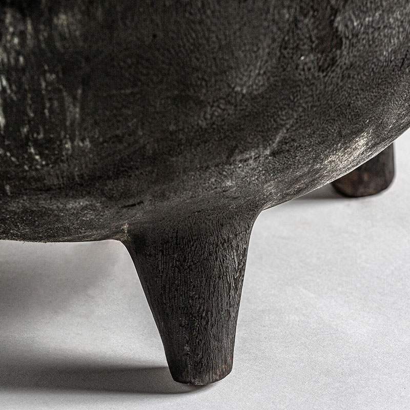 Mesa auxiliar Kepoi de estilo étnico fabricado en madera suar carbonizada en color negro con acabado envejecido.