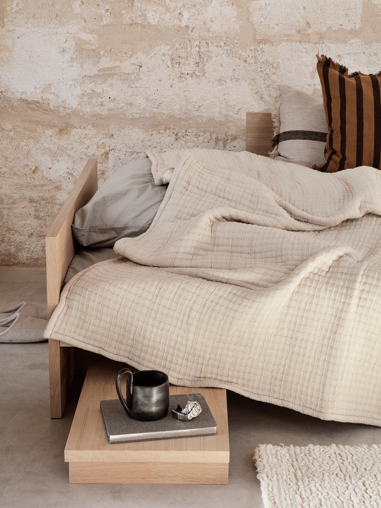 Hecha para complementar nuestra cama Kona, la mesa auxiliar Kona en chapa de roble certificada FSC ™ se asoma desde debajo del marco de la cama para proporcionar una plataforma práctica para un libro, una lámpara y un vaso de agua. El diseño de inspiración japonesa se eleva sobre el suelo a la altura perfecta. Pero no tiene que quedarse en el dormitorio: utilícelo para exhibir objetos en una sala de estar o en el baño.