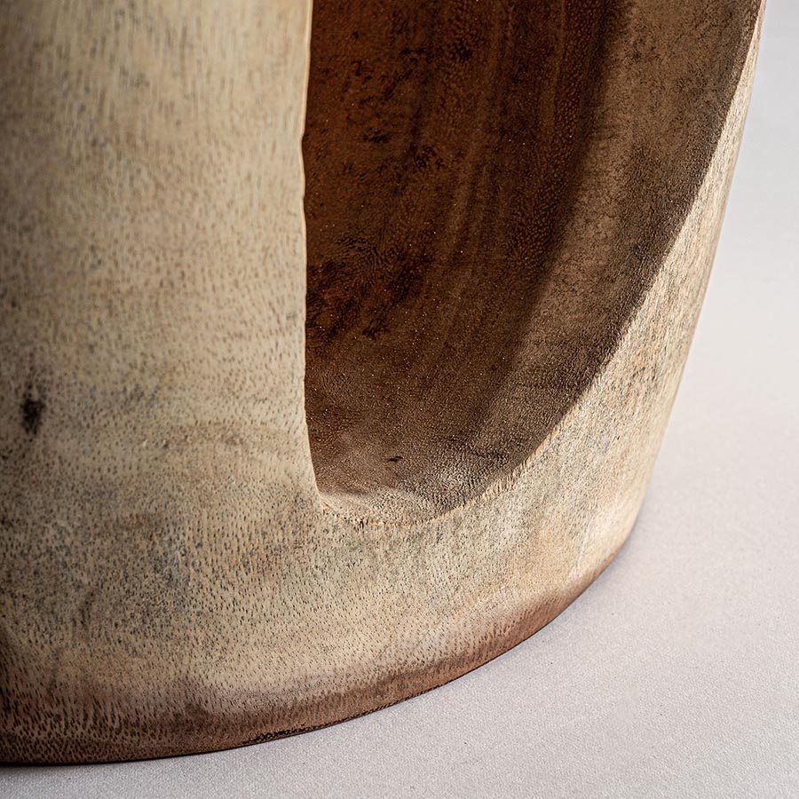 Mesa auxiliar krania de estilo étnico fabricado en madera suar en color marrón.