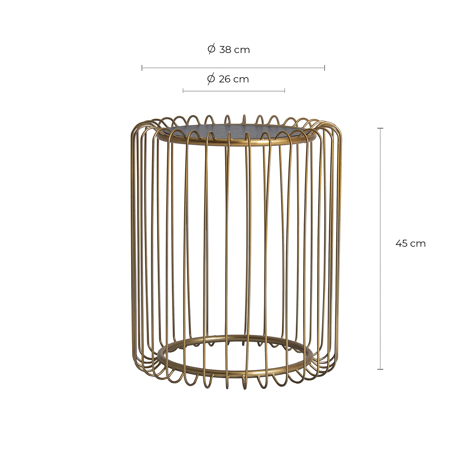 MESA AUXILIAR REDONDA LUCERNA, EN COLOR ORO/NEGRO, DE ESTILO ART DECO. FABRICADO EN HIERRO, COMBINADO CON MADERA DM.