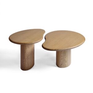 Mesa auxiliar acabada en madera natural. Su forma irregular con líneas curvas lo hacen un modelo sofisticado y elegante de líneas sencillas. Disponible en otras medidas para hacer set de mesas de centro o colocar por separado como mesa auxiliar. Se venden por separado.